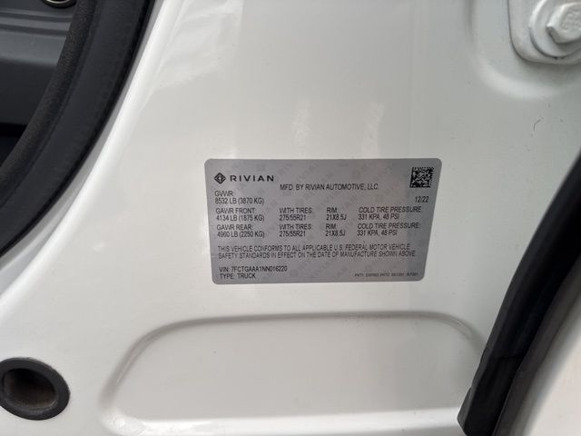 CARFAX One-Owner. White 2022 Rivian R1T Adventure AWD 1-Speed Automatic Clean CARFAX. Electric ZEV 600hp R1T Adventure, 4D Crew Cab, Electric ZEV 600hp, 1-Speed Automatic, AWD, White, Black Mountain w/Perf Vegan Leather Seat Trim w/Patterned Stitching.